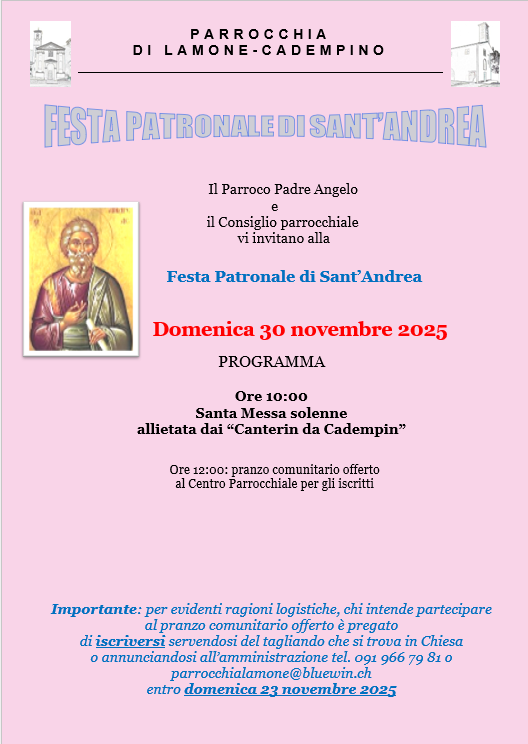 Consiglio pastorale Attività parrocchiali Parrocchia di Lamone-Cadempino Festa Patronale di S. Andrea il 30 novembre 2025.